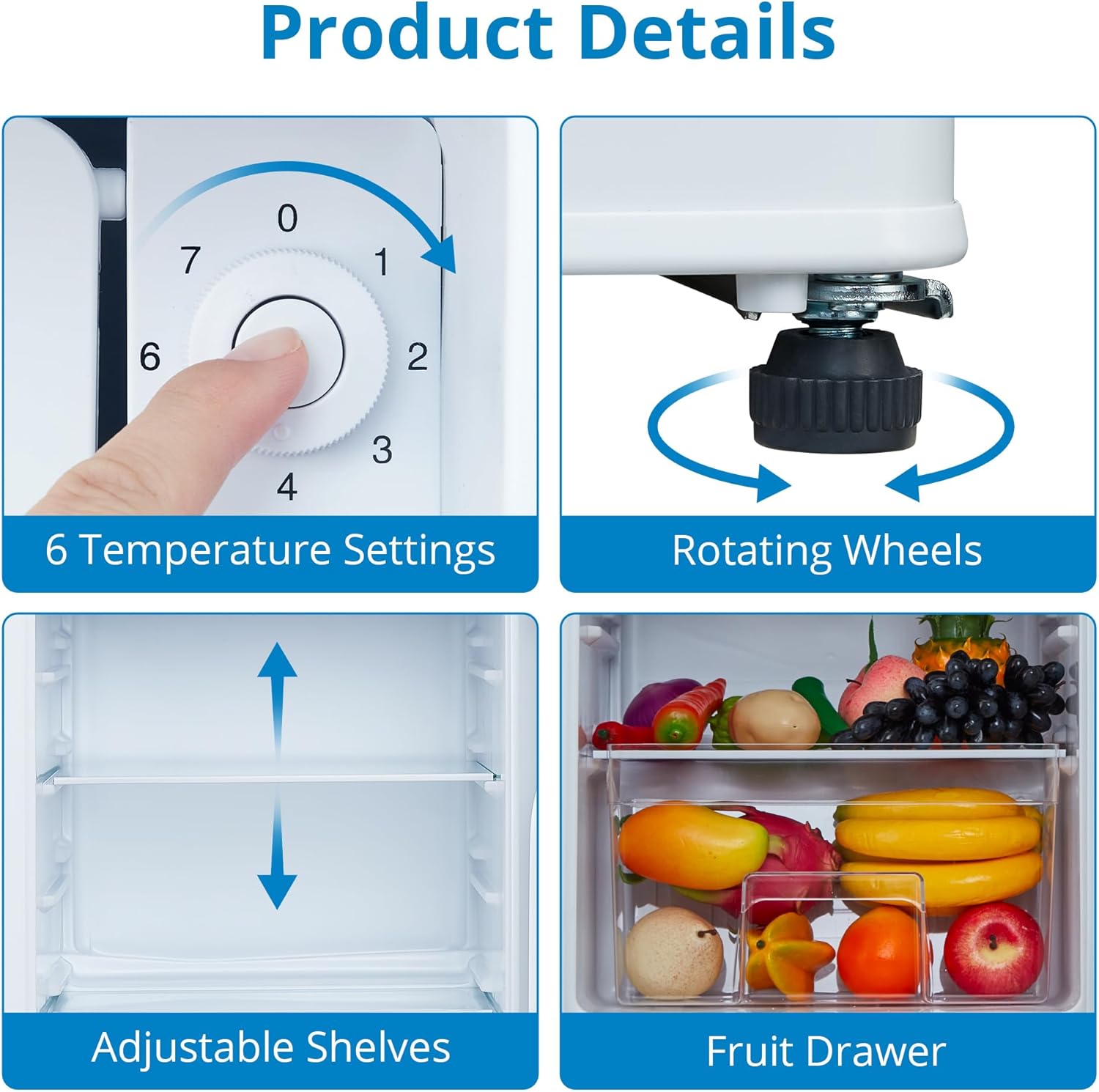 - 【7-Level Temperature Control】 The small refrigerator for bedroom Precisely dial in cooling settings for optimal freshness. Easily adjust via thermostat knob in this mini fridge with freezer
