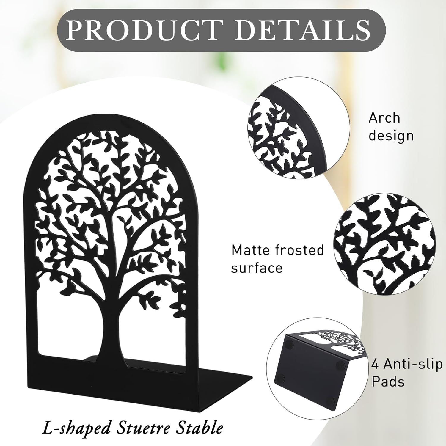 - Exquisite Gift: tree design bookends adopt elegant flowers and unique tree shadow design, which can decorate desktops, schools and offices, and can also improve the neatness of desktops; It is a gift for family members, students and reading lovers