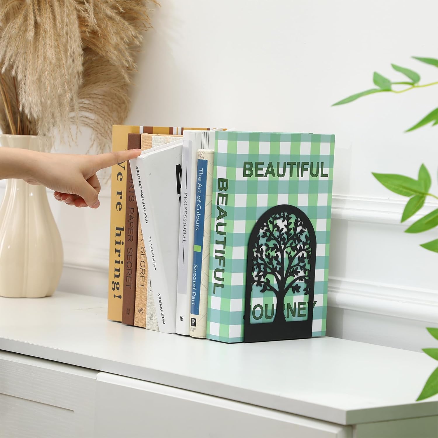 - Value Package: you will receive 2 kinds of vase design bookends and 3 kinds of tree shadow design bookends with different characteristics, 5 pairs (10 pieces) of bookends, sufficient quantity is not only a good helper for organizing books, but also a decoration for home and office, suitable for book lovers