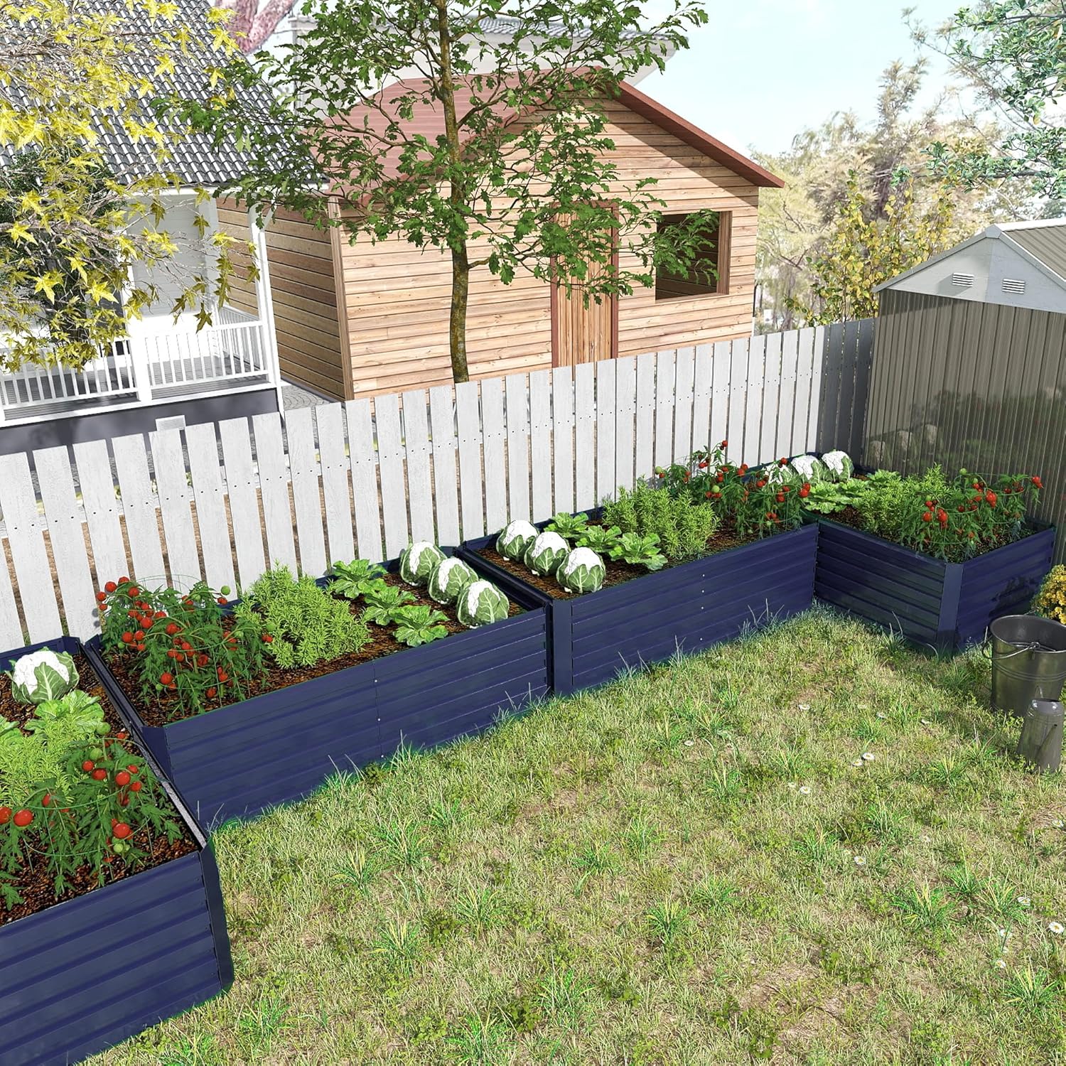 - Durable Galvanized Raised Garden Bed: Made of stable thickened galvanized steel sheet, which can be exposed to sunlight, rain, snow and other environments for a long time, equipped with two ground stakes and three stabilizing bars. Keep your garden beds looking their best for years to come.