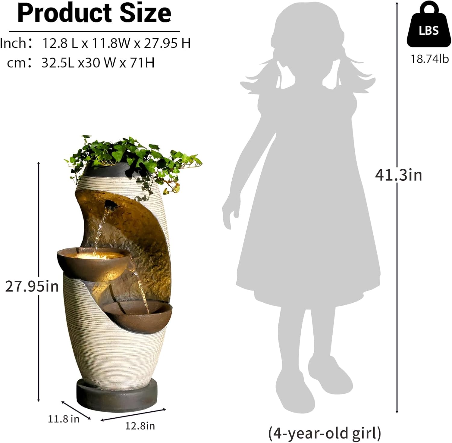 - Texture and Durability: The outdoor water fountain is made from high-quality, high-strength resin material. It features a textured finish with a solid feel. This material ensures resistance to fading and peeling.
