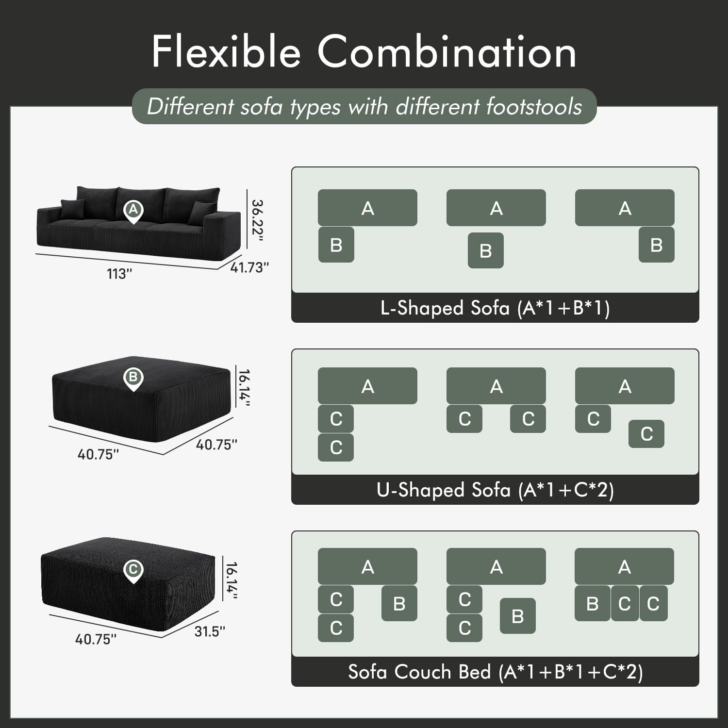 - Versatile Design for Everyday Living: More than just a sofa—this modular set balances style and functionality for busy households. Its compact 112 inch wide fits 3-4 people without overwhelming the room, while the separate pieces can be rearranged for movie nights, game days, or extra seating. Backed by high-quality construction, the sofa’s sturdy frame and fade-resistant fabric ensure long-lasting durability, making it a practical choice for any home.