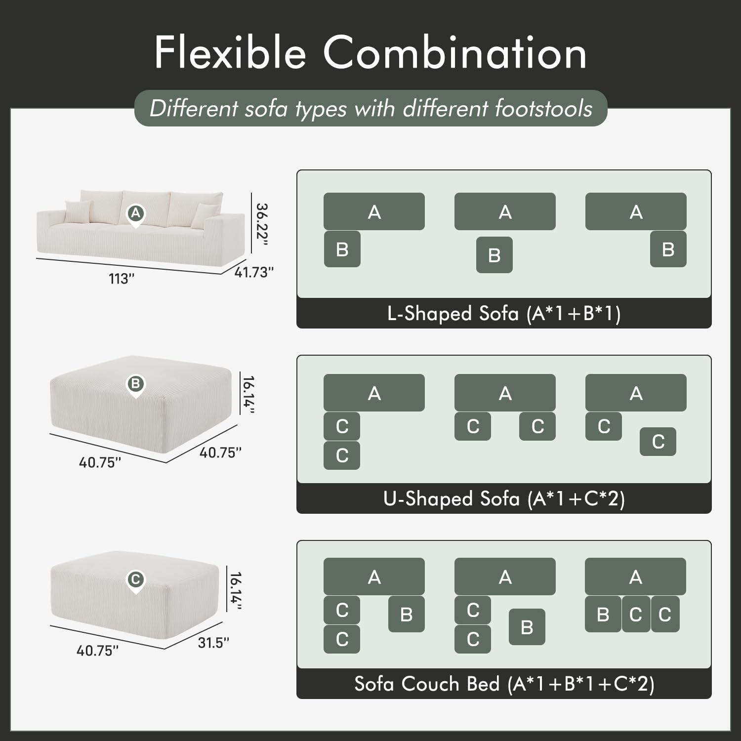 Boneless Sectional Cloud Couch Sofa for Living Room, 112" U-Shaped Modular Modern Lounge Sleeper Beige Couches with Chaise, No Assemble, Cordury Compression Upholstered Sofas