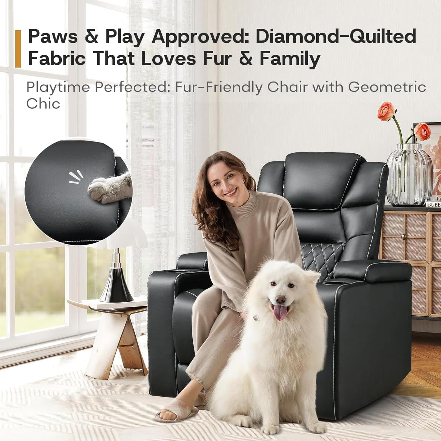 - Soft Breathable Faux Leather Recliner: This luxurious theater seating use of high-quality faux leather for upholstery material. With high-density foam to provide maximum comfort and stability, suitable for living room, bedroom. Faux leather with breathable microporous has good breathability, moisture absorption and sweat wicking ability, caring for the chair is quite easy while easier to wipe!
