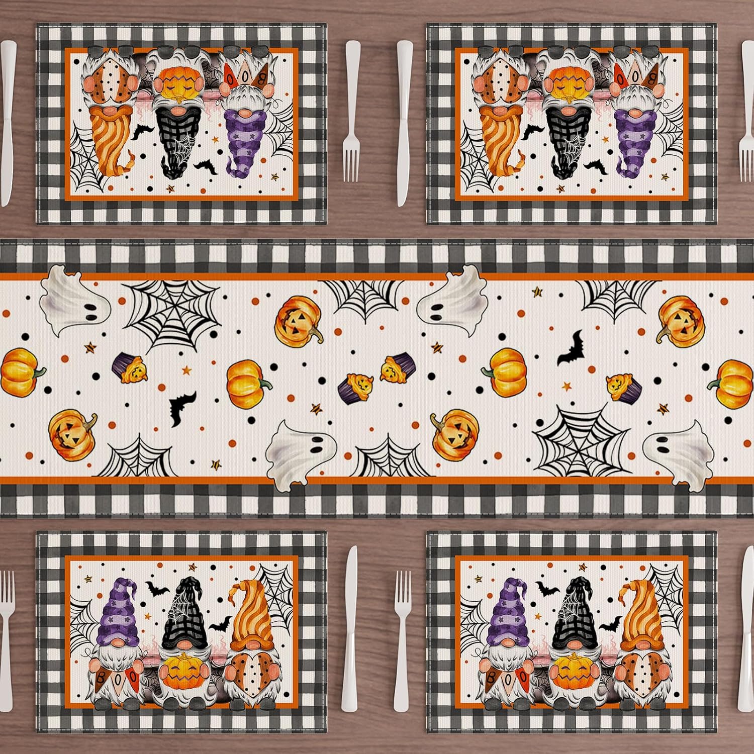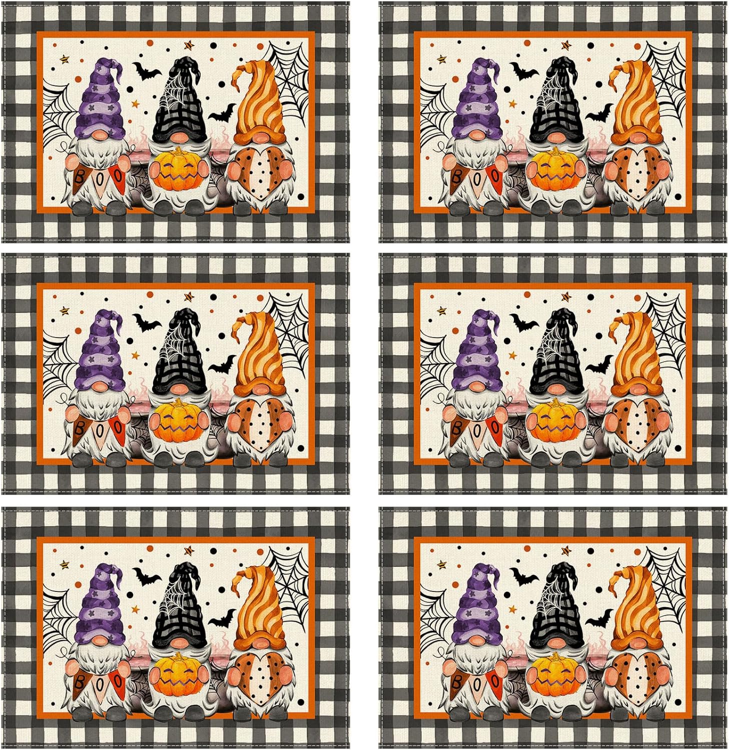 XCHI Spooky Boo Plaid Gnome Halloween Placemats Set of 6 Table Mats for Party Home Kitchen Dining Table Decorations 12x18 Inch