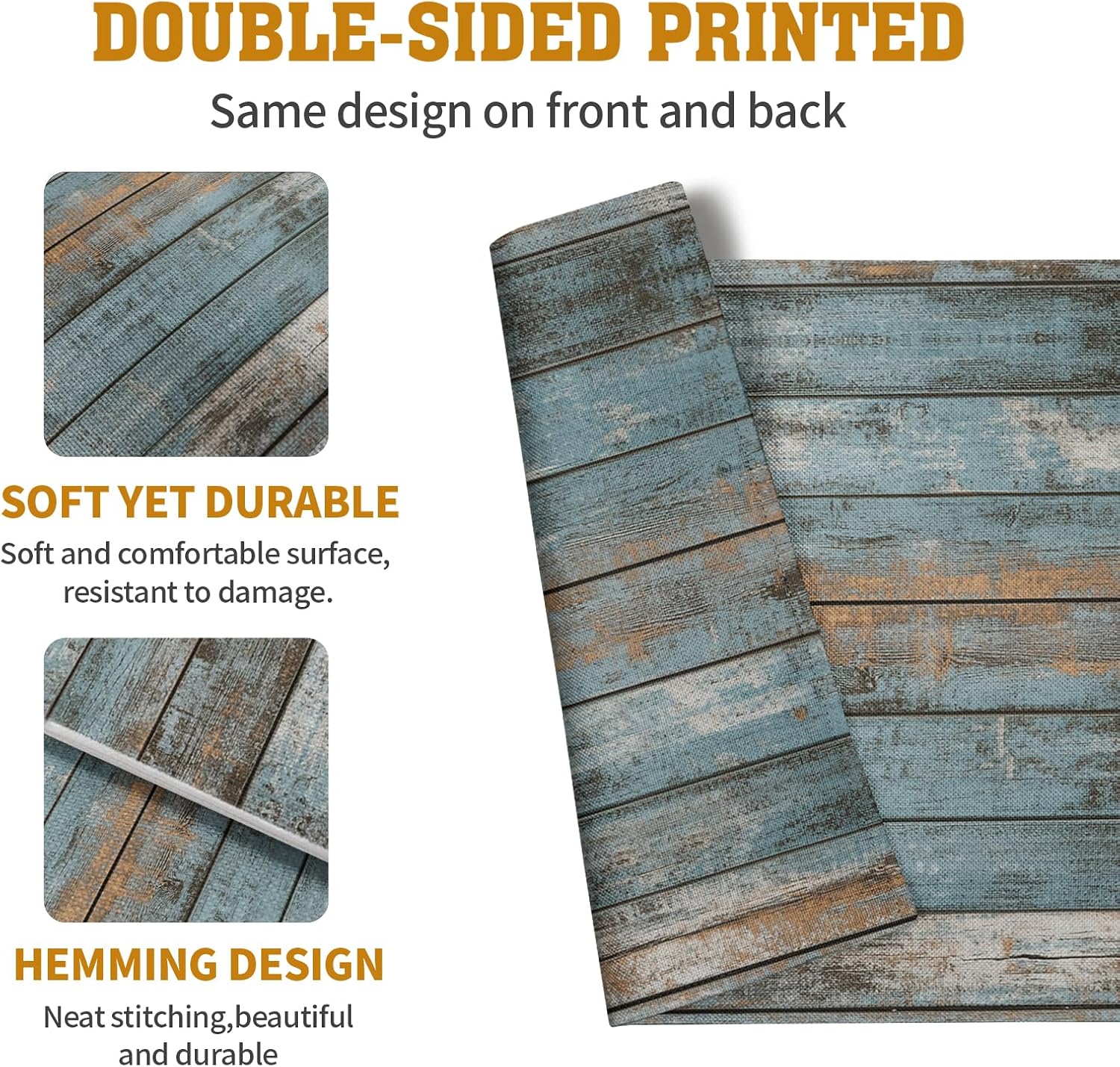 - TABLE DECORATION: Rustic table placemats feature high-definition printing technology for crisp, clear patterns and vibrant colors; rectangle placemats with a wood grain texture pattern; unique and eye-catching seasonal patterns add charm to farmhouse table place mats, creating a Christmas atmosphere for your party
