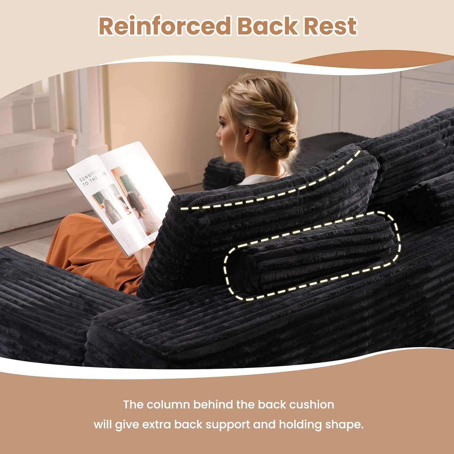 HOOOWOOO Cloud Sectional Couches for Living Room,Modular Sectional Sofa No Assembly,Plush Corduroy Large Floor Couch Furniture Set with Deep Seat Right Chaise L Shape(Black)