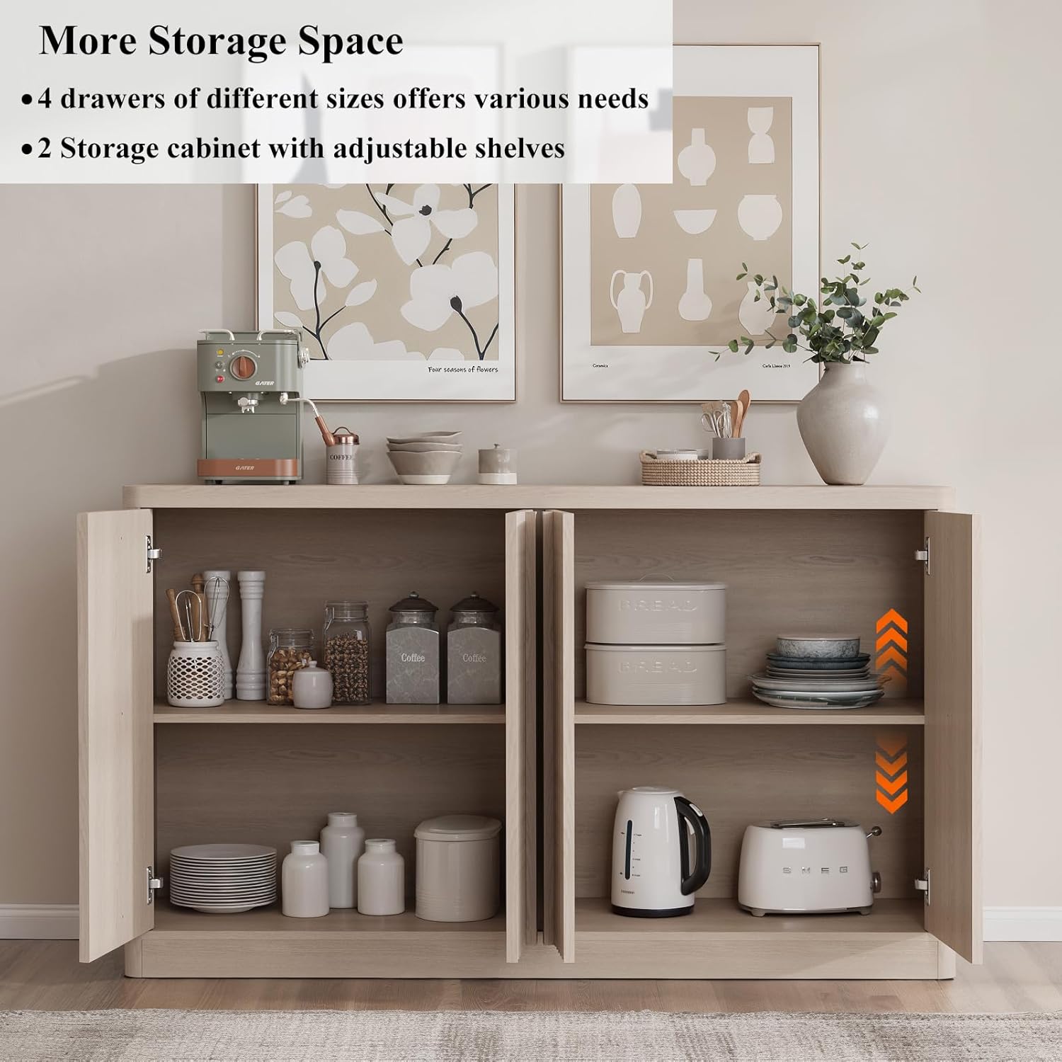 - ăStable, Durable and TexturedăCrafted from FSC-Certified engineered wood with solid wood pulls, this sideboard buffet cabinet with storage ensures lasting durability. The 1.8" thick top supports 150 lbs, making it a reliable coffee bar station for daily use and stylish home organization