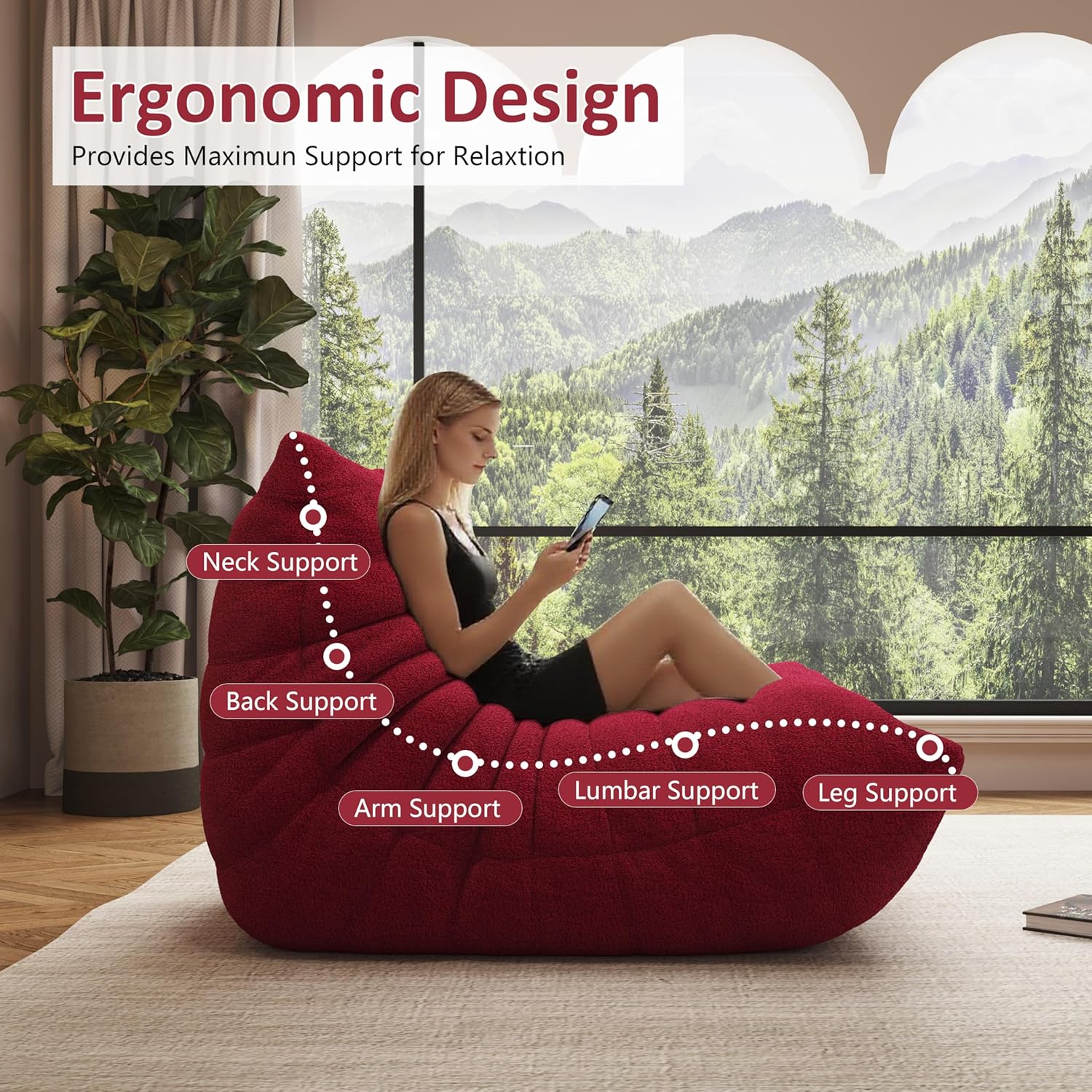 - 【Premium Teddy Velvet Fabric】: Our bean bag chair is crafted from breathable 100% polyester teddy velvet fabric, which is skin-friendly, softness, fashionable, offers a soft and delicate touch. The fabric is thick, durable and long-lasting.