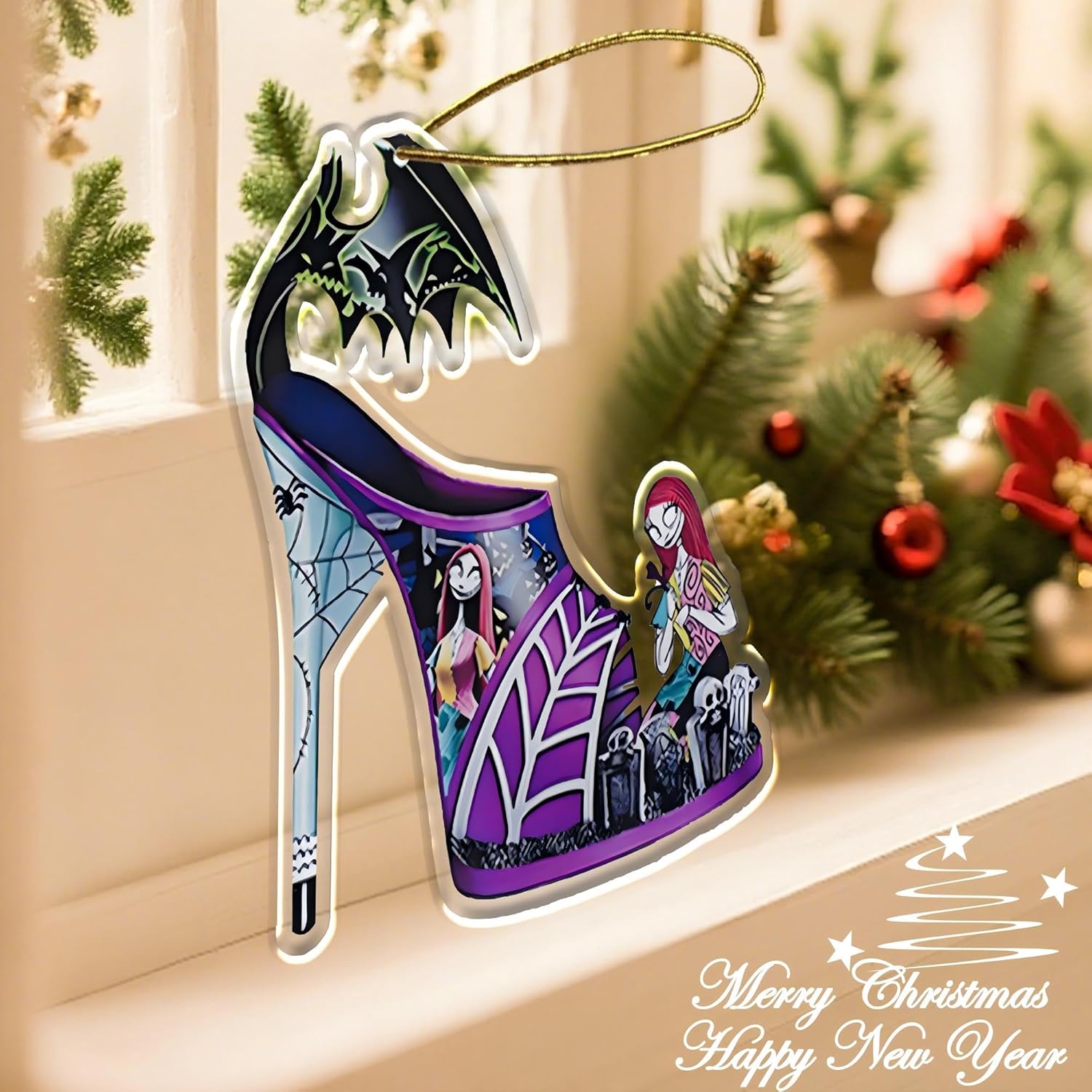 2025 Halloween Christmas Tree Decorations, 8PCS Acrylic Cute Night Before Pendants Hanging, 2D Flat New Year Set Spooky Decor Indoor Home Party Gifts Ornaments (10cm/3.93In)
