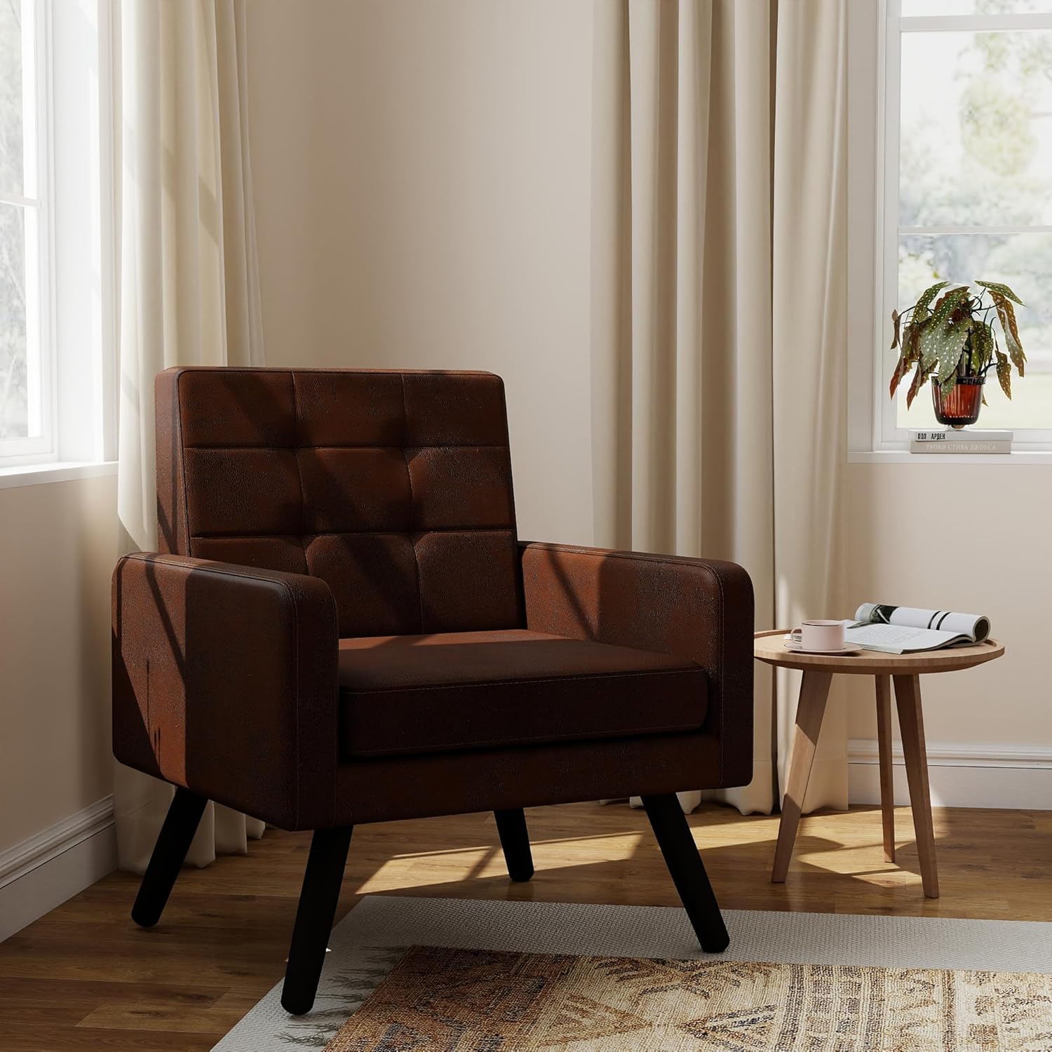 Kromax Mid-Century Modern Accent Chair for Living Room, 496 Lb. Weight Capacity, Dual Armrests, Comfy Extra Large Seat, Timeless Style Perfect for Reading & Relaxing, Bronze