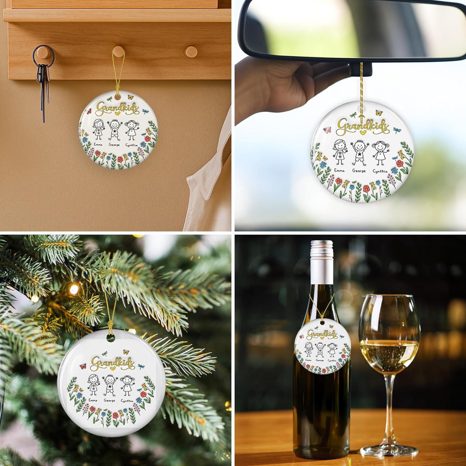 Grandkids Personalized Ceramic Ornament – Custom Christmas Tree, Grandkids Holiday Keepsake, Personalized Ornament
